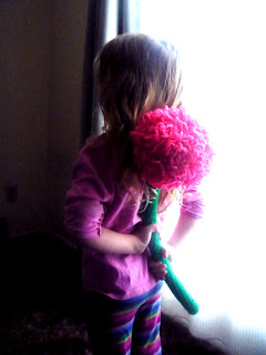 The blanket isn't done but I'll get back to it soon. Right now I am learning another stitch, the loop/fur stitch. It reminds me of shag carpeting but its kinda fun. I had a big vase that needed to be filled with flowers but I also have a little two-year-old so I couldn't put anything breakable in it. I decided to make some giant flowers.